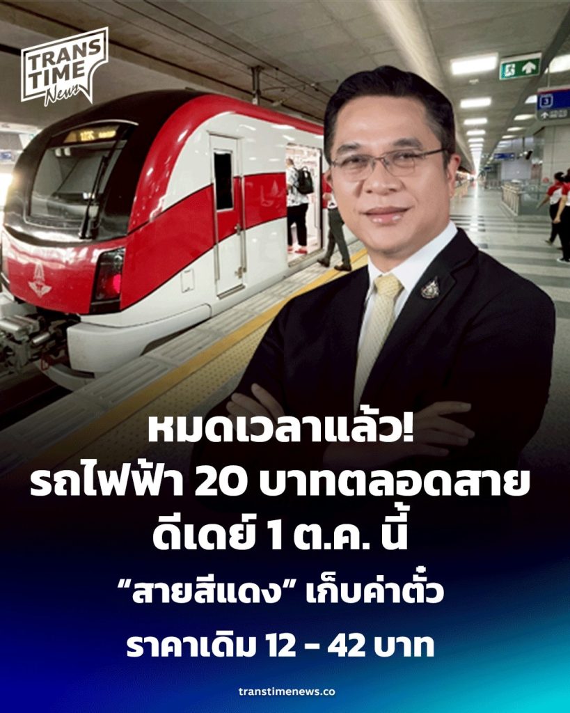 ใกล้ถึงเวลาสิ้นสุดมาตรการ “ค่าโดยสารรถไฟฟ้าชานเมืองสายสีแดง 20 บาทตลอดสาย” 30 ก.ย. 2568 ผู้โดยสารเตรียมกลับสู่โครงสร้างค่าโดยสารปกติ 12–42 บาท ขณะที่บริษัท รถไฟฟ้า ร.ฟ.ท. จำกัด ก้าวสู่ปีที่ 15 แห่งการดำเนินงาน คว้ารางวัลองค์กรต้นแบบด้านสิทธิมนุษยชน พร้อมพัฒนาระบบราง–บริการ Feeder–EV Bus มุ่งยกระดับคุณภาพชีวิตประชาชน