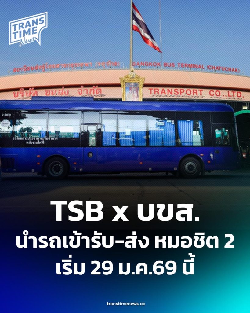 ไทย สมายล์ บัส (TSB) ประสานความร่วมมือกับ บริษัท ขนส่ง จำกัด (บขส.) เพิ่มความสะดวกในการเดินทางให้กับประชาชน จัดจุดจอดรับ-ส่งรถเมล์พลังงานไฟฟ้าภายในบริเวณสถานีขนส่งผู้โดยสารกรุงเทพ (จตุจักร) หรือ หมอชิต 2 เพื่อเชื่อมต่อการเดินทางระหว่างรถโดยสารทางไกลและระบบขนส่งเมืองได้อย่างไร้รอยต่อ