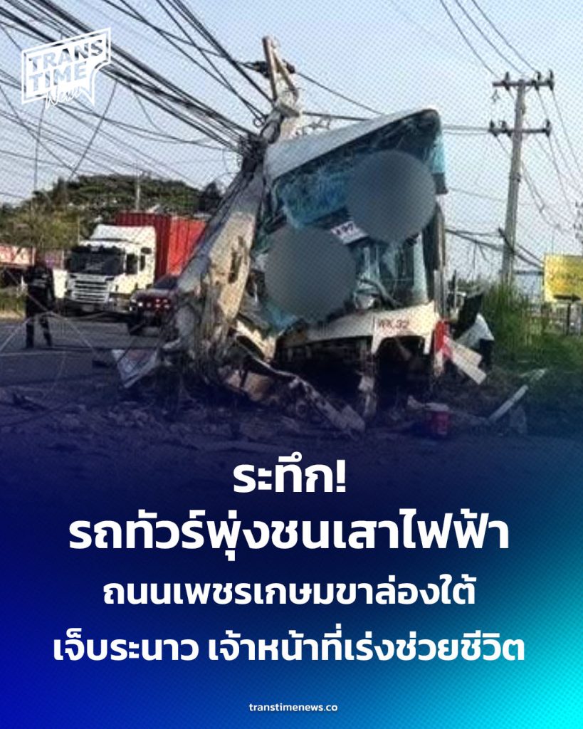 เมื่อเวลา 07.00 น. วันที่ 17 มีนาคม 2569 มีรายงานข่าวว่า เกิดอุบัติเหตุรถทัวร์โดยสารเสียหลักพุ่งชนเสาไฟฟ้า บริเวณริมถนนเพชรเกษม ขาล่องใต้ พื้นที่ ต.ห้วยทรายใต้ อ.ชะอำ จ.เพชรบุรี ส่งผลให้ตัวรถได้รับความเสียหายอย่างหนัก